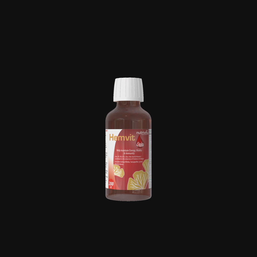 HemVit Liquid helps support the maintenance of normal hemoglobin levels and promotes blood health. It is a unique blend of essential vitamins, minerals, and herbal extracts that are essential for the synthesis of hemoglobin and for the proper functioning of the blood cells. HemVit Liquid is designed to meet the nutritional needs of individuals who may have low hemoglobin levels due to inadequate dietary intake, poor absorption, or increased demand, such as pregnant women, lactating mothers, athletes, and individuals recovering from anemia or other blood-related conditions.